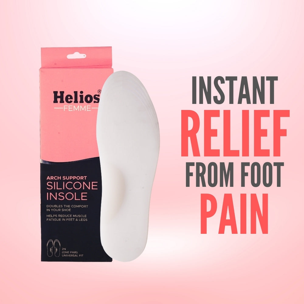Helios Arch Support Silicone Insole For Ladies has ergonomic design, no matter what shoe wear, it can effectively reduce the foot pressure, so what your feet remain comfortable, effectively relive the pain caused by the pressure. the arch support silicone insole helps to maintain the arch of the foot. It helps to align and reduce load on the foot helps in reducing pain.