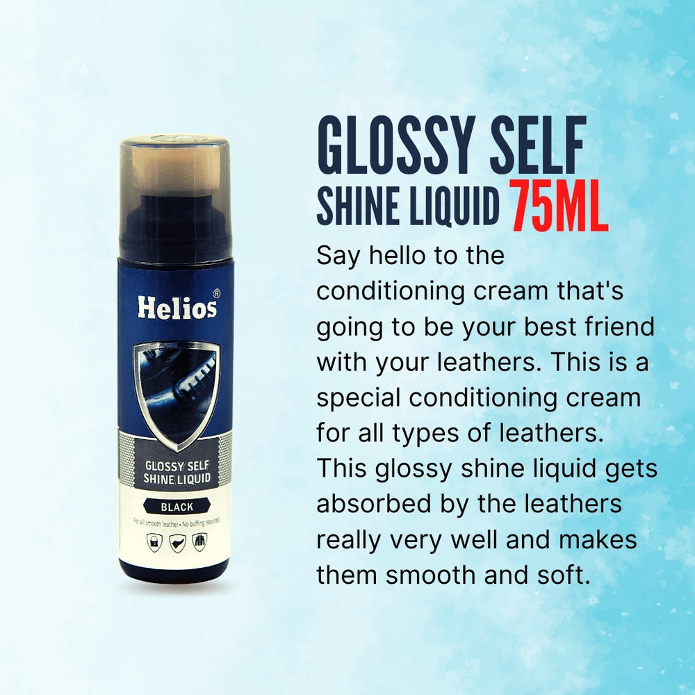 It is a special conditioning liquid for all types of leathers. This glossy shine liquid gets absorbed by the leathers really well and makes them smooth and soft. This makes the colour of the leather glow really well. It gives you instant shine without any buffing. This glossy self shine can be carried easily too when you travel.
