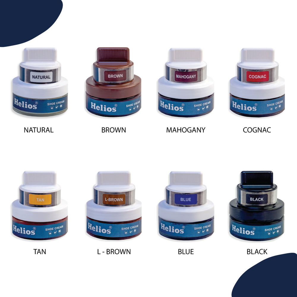 The Helios Coloured Shoe Cream being highly pigmented, impregnates itself deep into the leather pores which along with maintaining the colour, nourishes the leather at the same time. Our shoe creams made out of the finest waxes will let your shoes shine exactly the way you want them to. The creams will not only make your shoes shine, but it will also help in making the leather smooth, radiant and long lasting. Rub it with a shoe cloth for best results. Can be used on leather bags, wallets, sofa, jackets, belts as well.