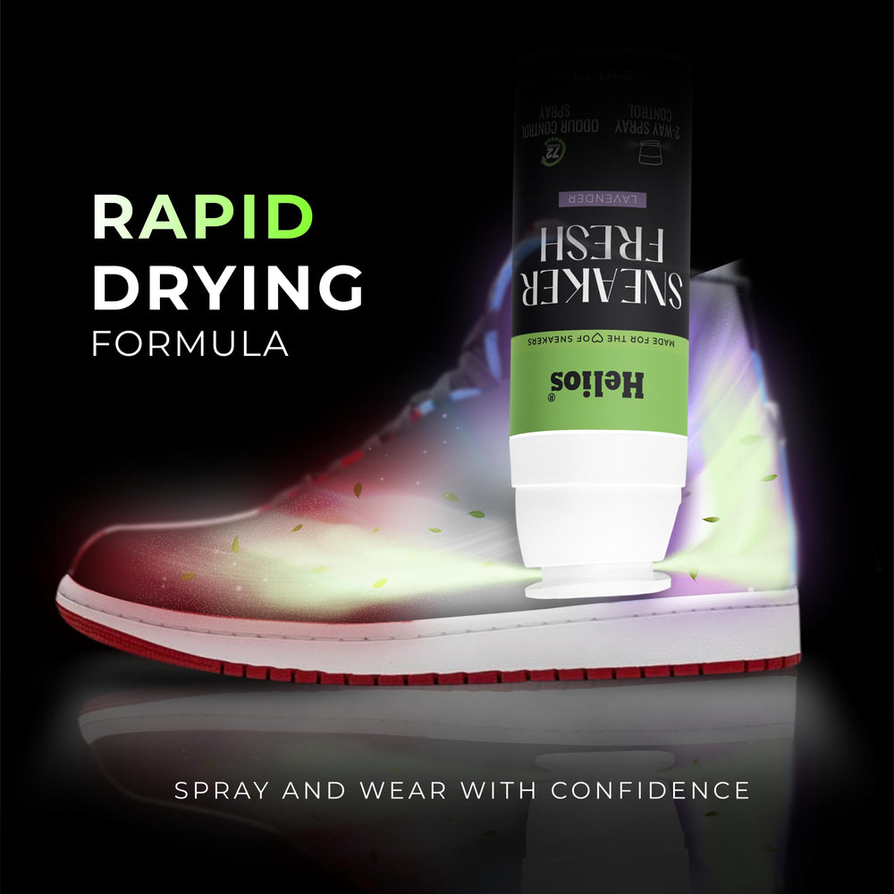 Finished with a clean lavender fragrance, it doesn’t just mask smells — it eliminates odor fast and keeps your sneakers fresh for up to 72 hours.