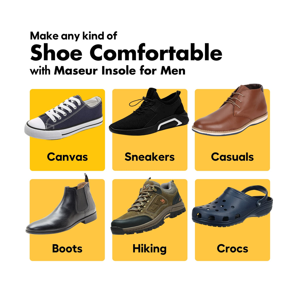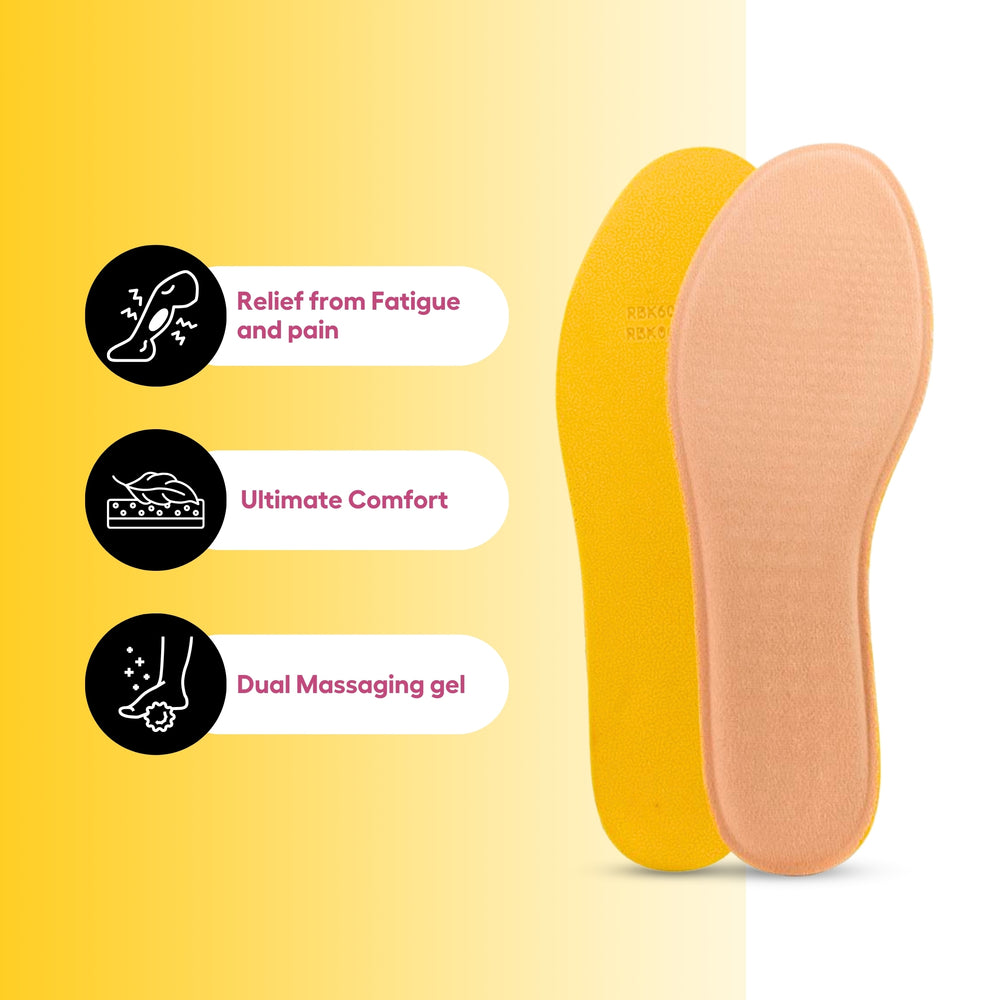 Slide insole into the shoe and test the fit. Trim a little of the toe area at the time to fit. The Insole heel should fit firmly up against the inside heel of your shoe. this is perfect or your heel support and feels like there is extra comfort for your feet. Even after a long tiring day, your feet will feel fresh and it can be great for everyday use. The insoles are completely comfortable and are flexible, they take the shape of the feet very well. The insoles have a gel inside them which gives a feeling of massage to the feet.