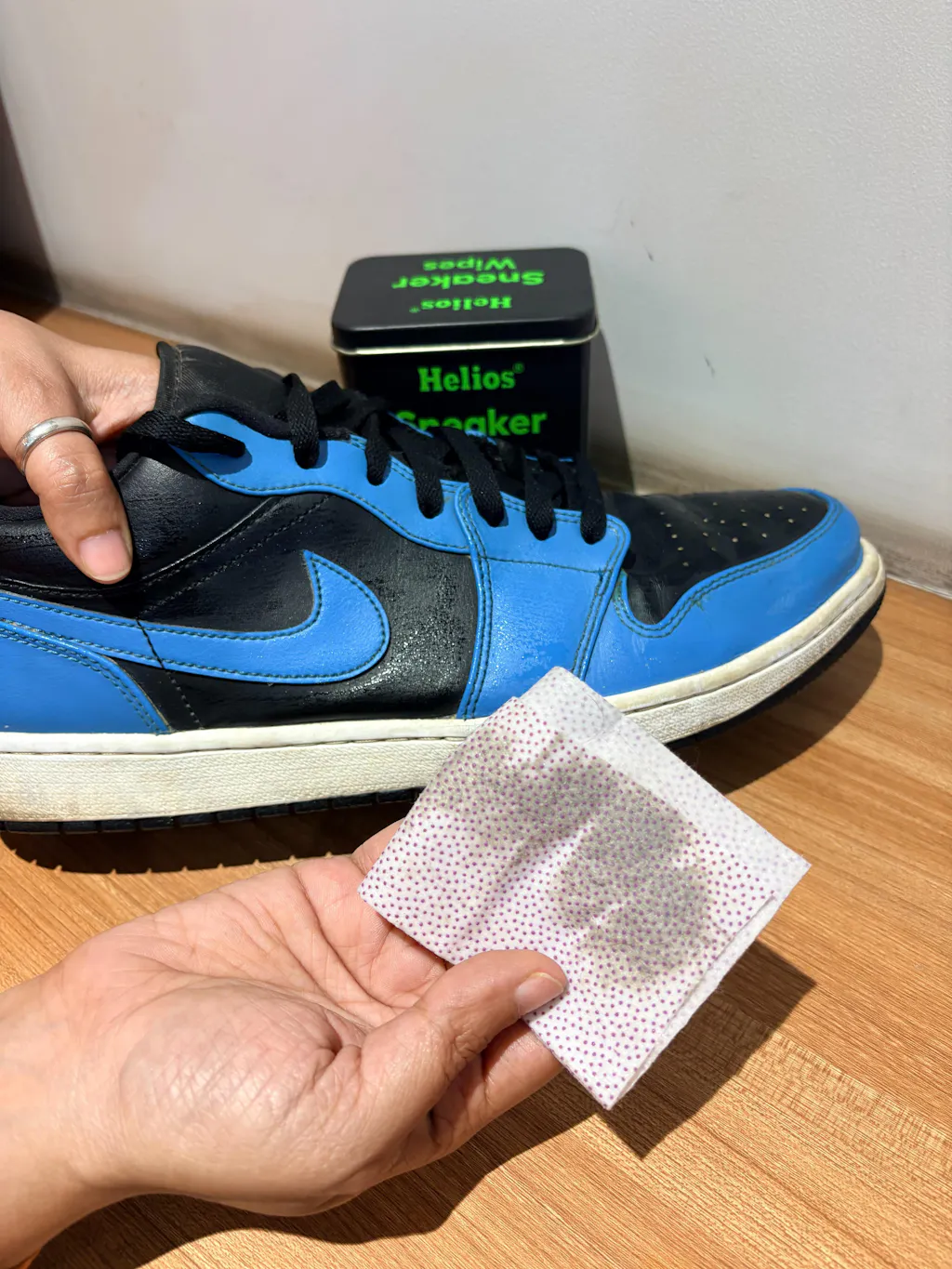 Each wipe sealed individually in its own packet — stays moist for months and I can throw one in my bag, pocket or gym kit. Used one on a fresh scuff before an event and white midsole was clean in seconds.
