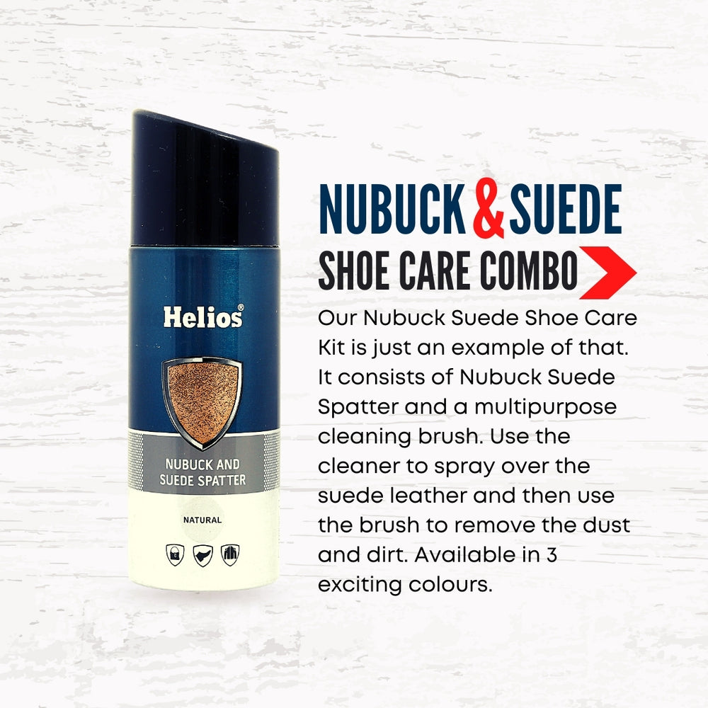 We at Helios believe in making our users lives easy by making their shoe care experience smooth, short and shinier. And our Nubuck Suede Shoe Care Kit is just an example of that. It consists of Nubuck Suede Spatter and a multipurpose cleaning brush. Use the cleaner to spray over the suede leather and then use the brush to remove the dust and dirt. Available in 3 exciting colours. Just match the colour of your shoe to our shade card (required) and order to give your shoes a new life. Note: The colours may slightly vary so kindly use on a small area at the back of the shoe to match the colour.