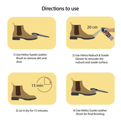Apart from just shoes, the Helios Nubuck and Suede Glower can be effectively used to get rid of dirt from the Nubuck or Suede surface of coats, jackets and bags as well. Irrespective of the color, this product is sure to condition and soften Suede and Nubuck leathers and helps revitalize them.