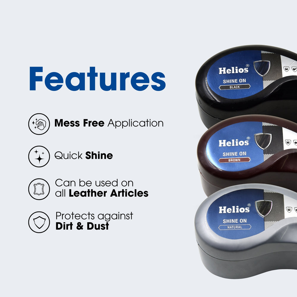Bringing your dull leather back to life will now be easier than never before all thanks to the Helios Shine On. There is no doubt in the fact that articles made out of premium quality leather require a lot of care and maintenance to make sure that they do not lose their natural shine and smoothness. The special design of the all in one Helios Shine Sponge enables it to be hand held and avoids the hassle of using multiple shoe care accessories like brushes and cloths. The upper case acts as the handle which has a ready to use sponge beneath it. The compact design of this product makes it very convenient to carry it while travelling.