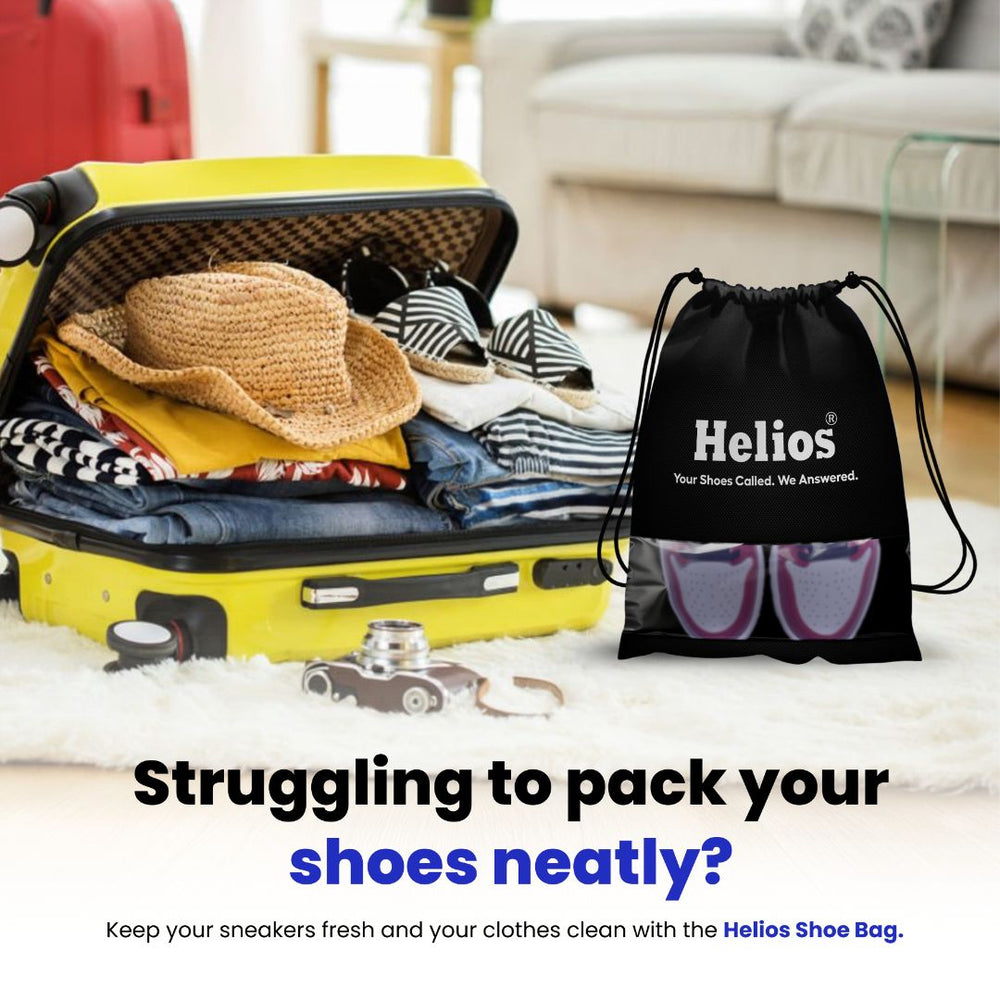 Whether you're packing for a quick weekend getaway or a long vacation, the Helios Travel Shoe Bag keeps your sneakers, loafers, or heels clean, organized, and separate from your clothes.