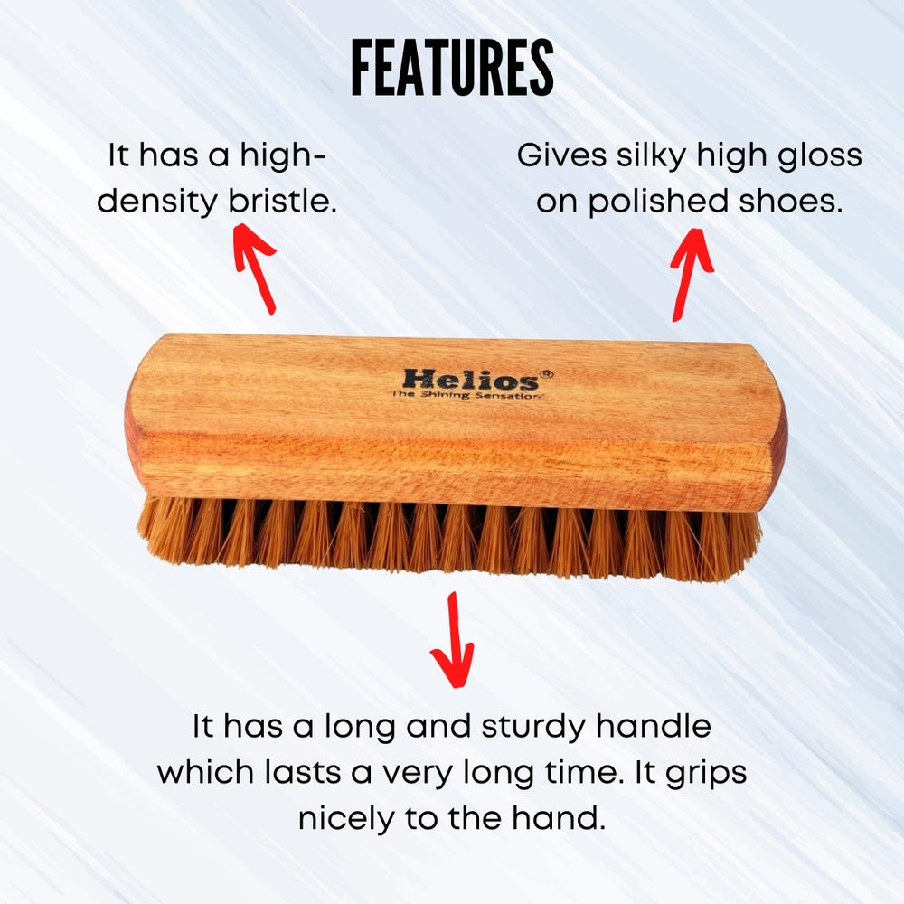 Helios Shoe Brush made with the finest of wood and bristled beautifully to give you best results when you rub them on your shoe and give them the care that they deserve. 100% Premium brush with high-density bristles. Use regularly for a silky high gloss on your polished shoes. It can be used on shoes, bags and other leather articles.