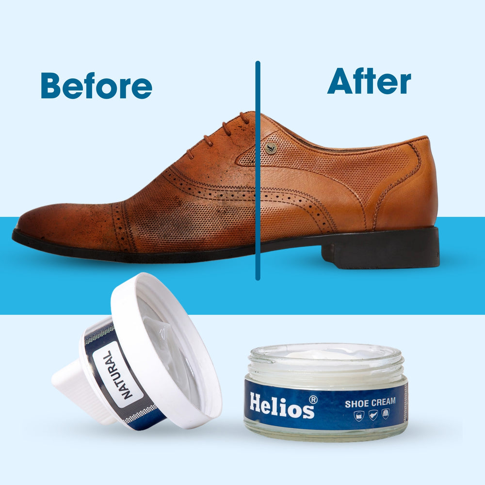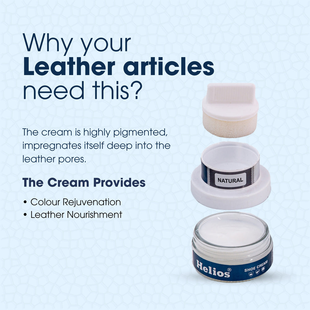 The Helios Coloured Shoe Cream being highly pigmented, impregnates itself deep into the leather pores which along with maintaining the colour, nourishes the leather at the same time. Our shoe creams made out of the finest waxes will let your shoes shine exactly the way you want them to. The creams will not only make your shoes shine, but it will also help in making the leather smooth, radiant and long lasting. Rub it with a shoe cloth for best results. Can be used on leather bags, wallets, sofa, jackets, belts as well.