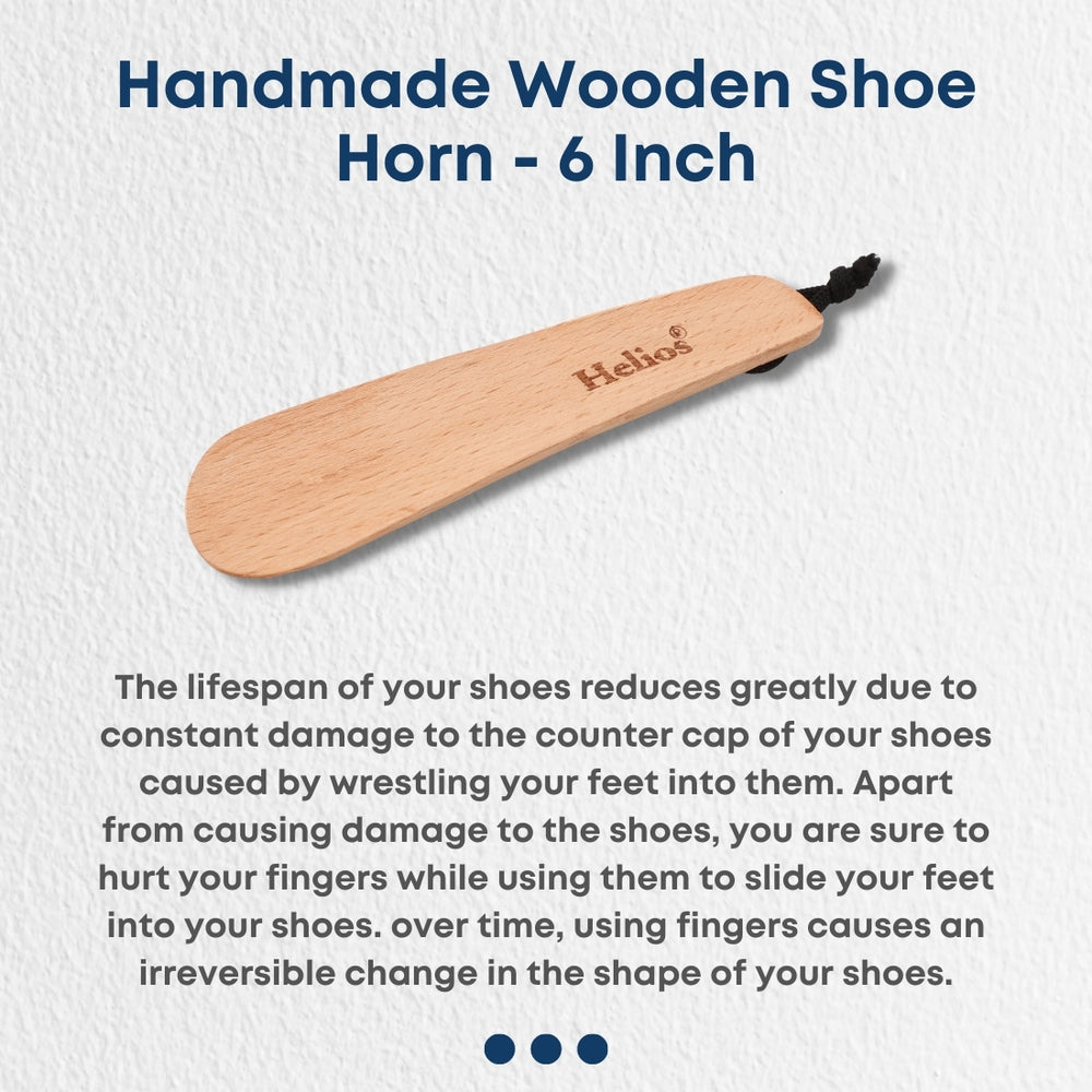 Are you tired of untying your shoe laces every time you want to put on your shoes and are your aching fingers looking for an easier way to slide your feet into your shoes? The Helios Handmade Shoe Horn of a compact 6 inch size is the answer to your problem.