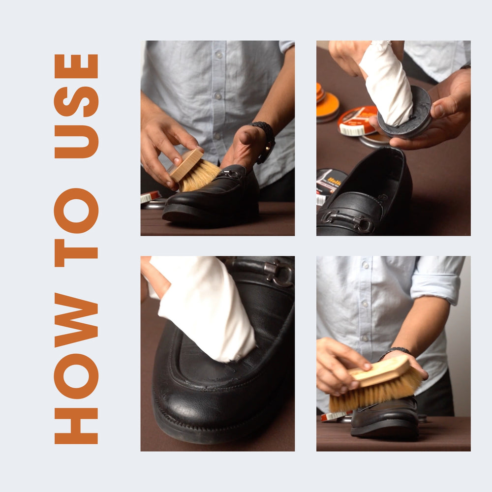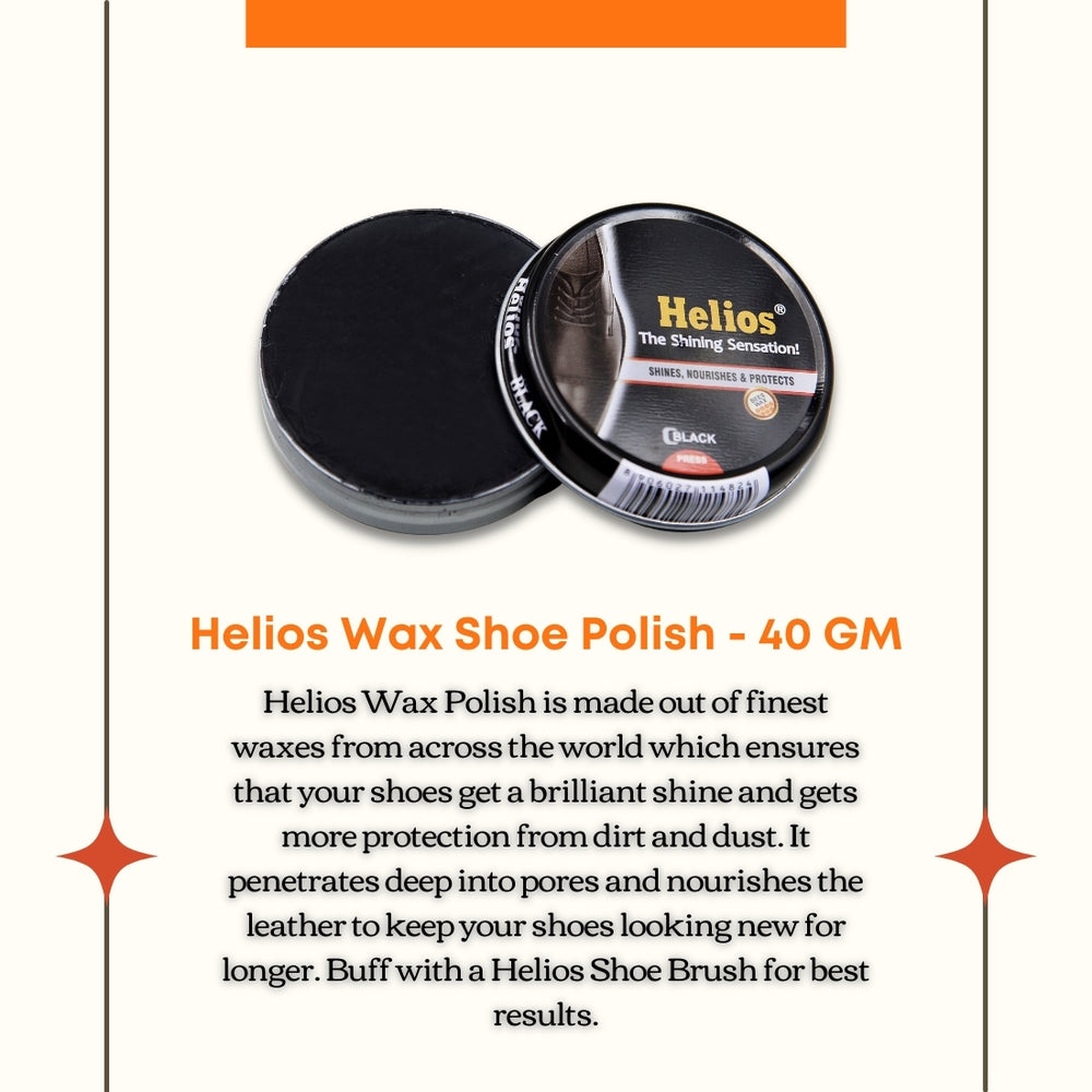 Helios Wax Polish is made out of finest waxes from across the world which ensures that your shoes get a brilliant shine and gets more protection from dirt and dust. It penetrates deep into pores and nourishes the leather to keep your shoes looking new for longer. Buff with a Helios Shoe Brush for best results.